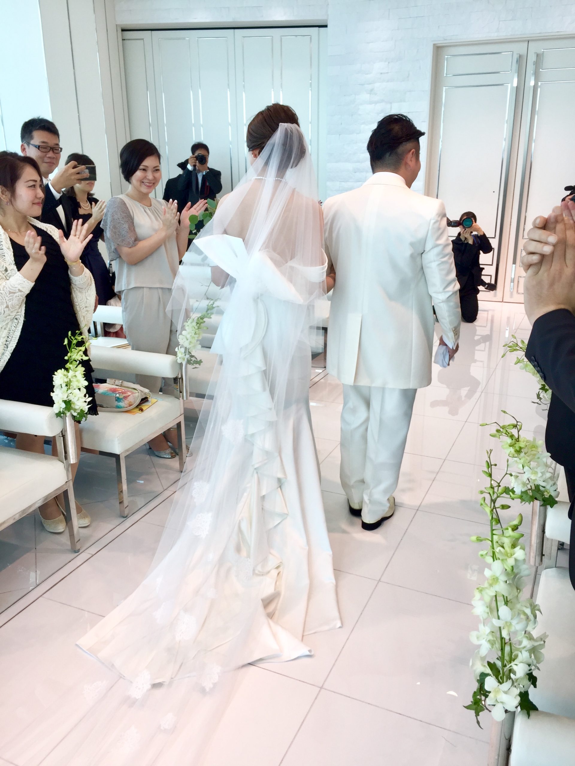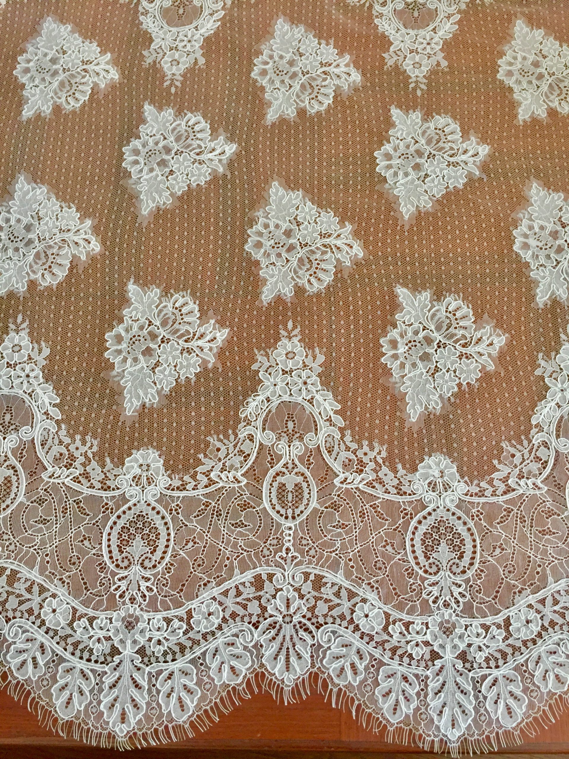 レースのモチーフを散らしたウエディングヴェールです。 お好きなレースをお選び頂いてお作り致します。歩くたびに揺れるレースのモチーフがとても印象的な後ろ姿を演出してくれます。